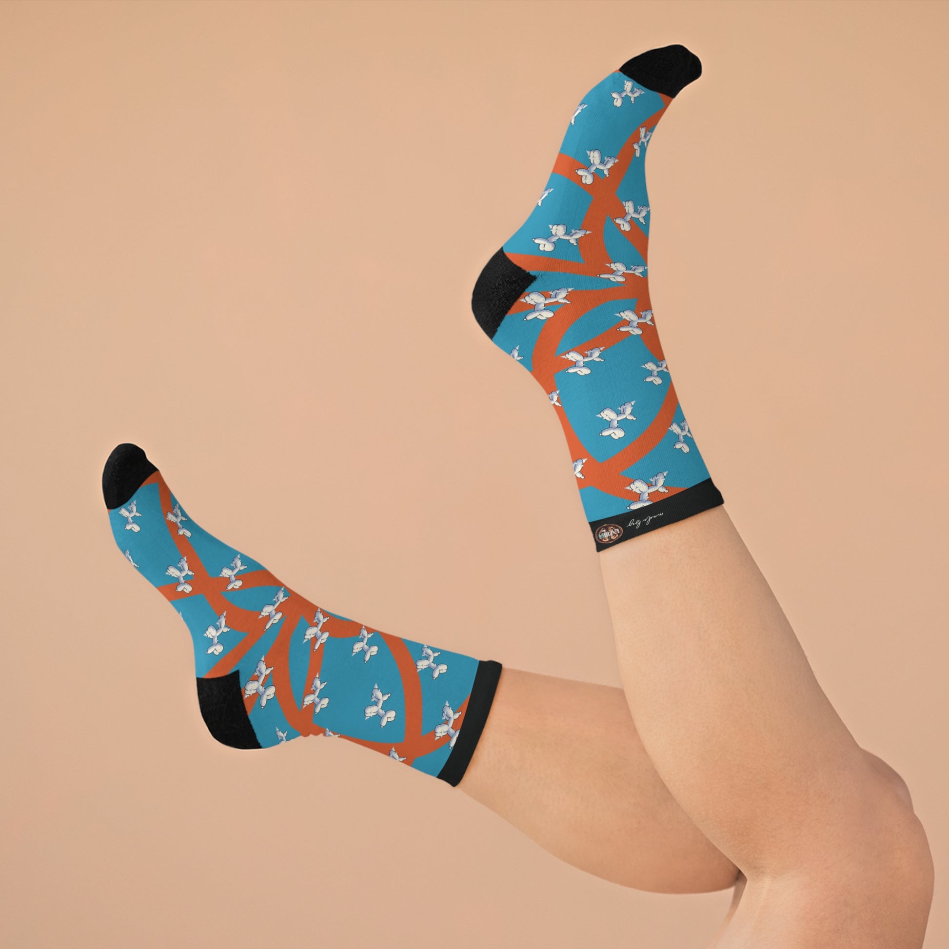 From the art collection SCIENK: step up your sock game with these vibrant Recycled Poly Socks that add a pop of personality to any outfit. Crafted from sustainable materials, they’re perfect for eco-conscious fashion lovers looking to express their unique style. The pattern is inspired by "cloud chaos theory: cumulus balloon dog" which makes for a striking design. Ideal for casual outings or lounging at home, these socks provide warmth and style that will elevate your vibe. Great for gift-giving during holidays and celebrations, they’re perfect for birthdays, Earth Day, or any occasion that calls for a touch of whimsy.