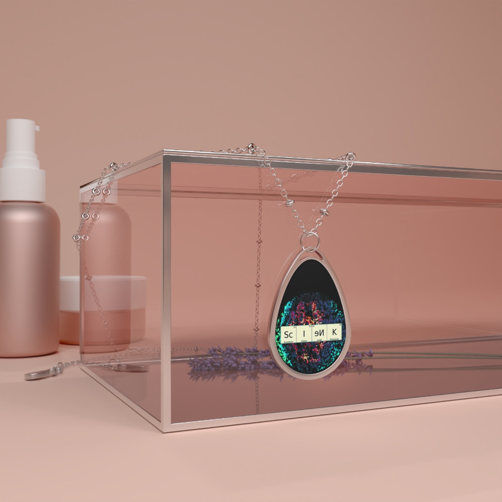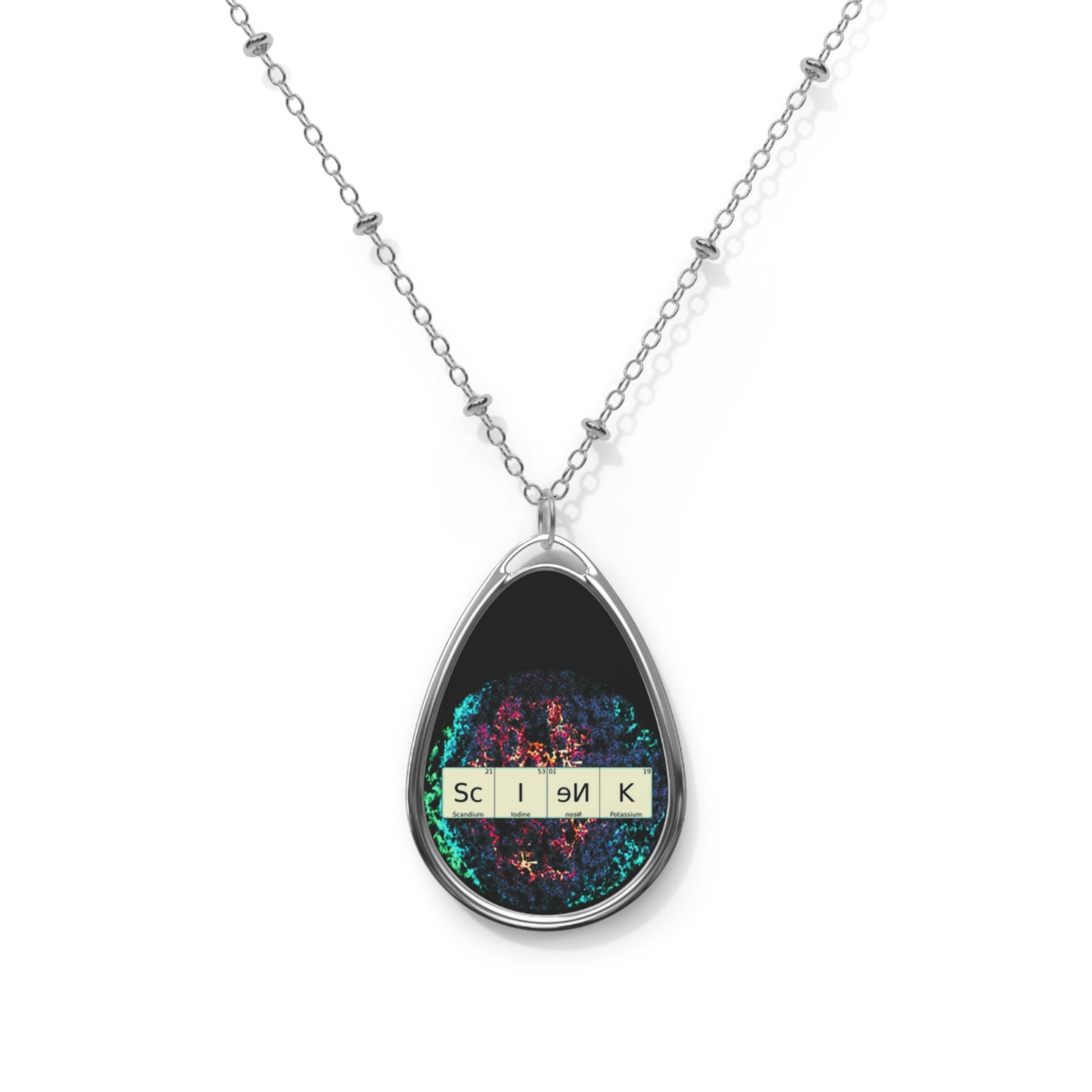 Unique Oval Necklace with science theme