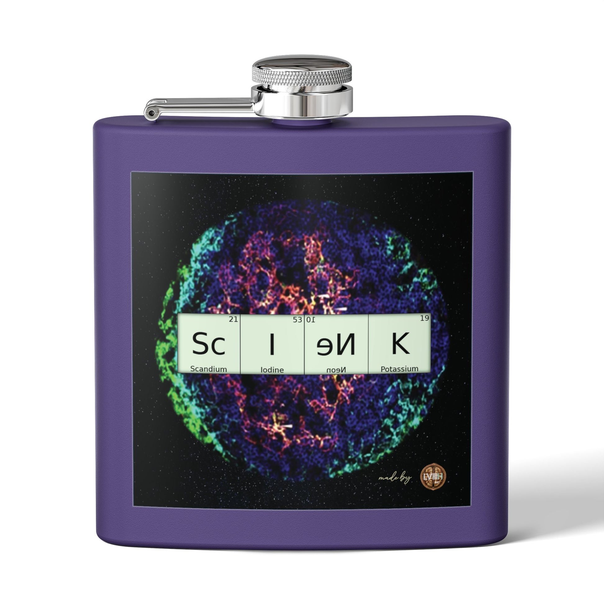 From the art collection SCIEИK comes a stylish Stainless Steel Flask and a perfect accessory for any occasion. With high quality & original design, this flask blends functionality with modern aesthetics. Its vibrant powder-coated finish and artistic design make it stand out, whether at a picnic, a concert, a camping trip or in the ski slopes. With a compact 6oz capacity, it’s perfect for carrying your favorite beverages on-the-go. Ideal for science enthusiasts, party lovers, or anyone who enjoys a touch of personality in their drinkware. This flask also makes a thoughtful gift for holidays like birthdays, graduations, or special celebrations, enhancing the experience with every sip. Enjoy a rugged yet stylish way to stay hydrated and keep your drinks at the perfect temperature!