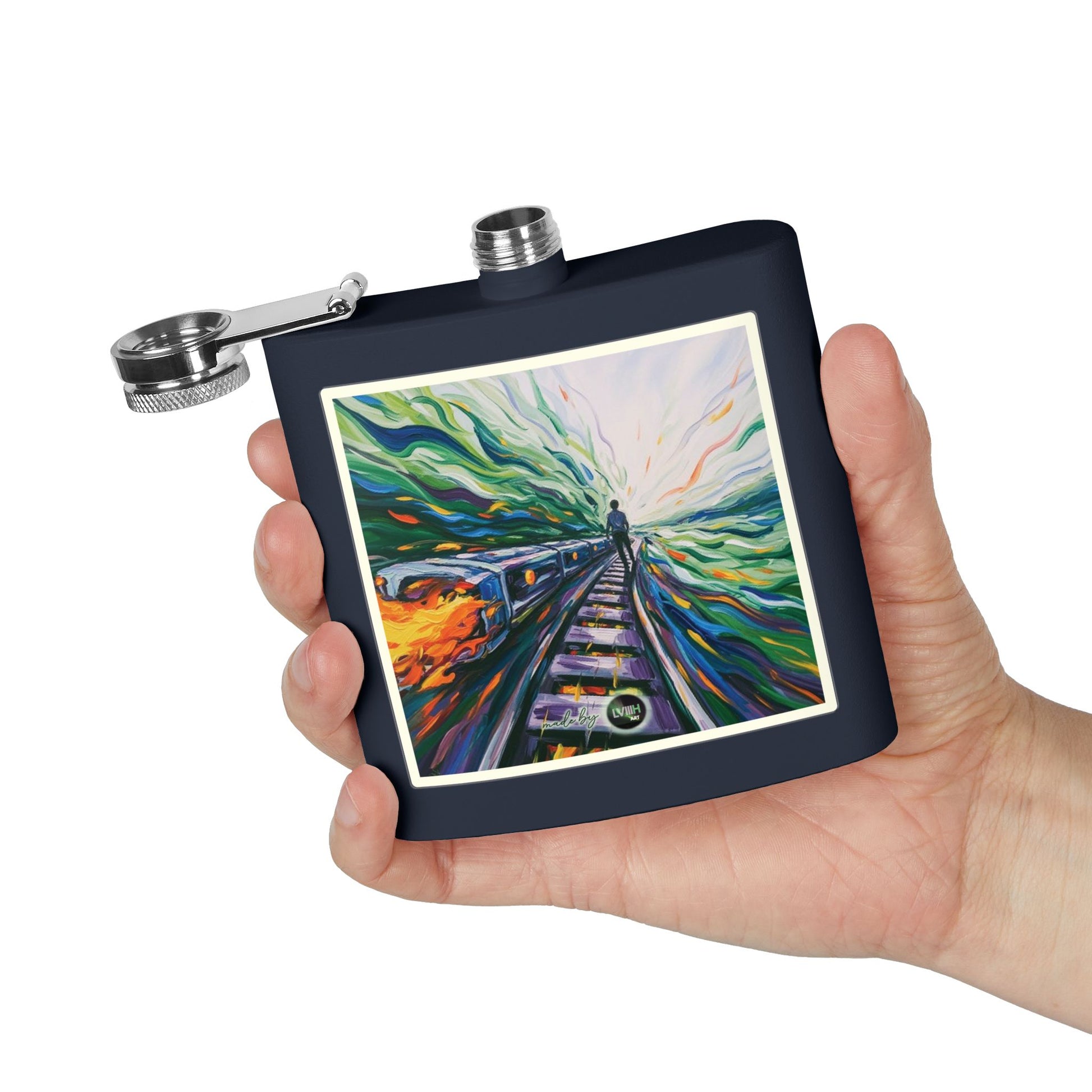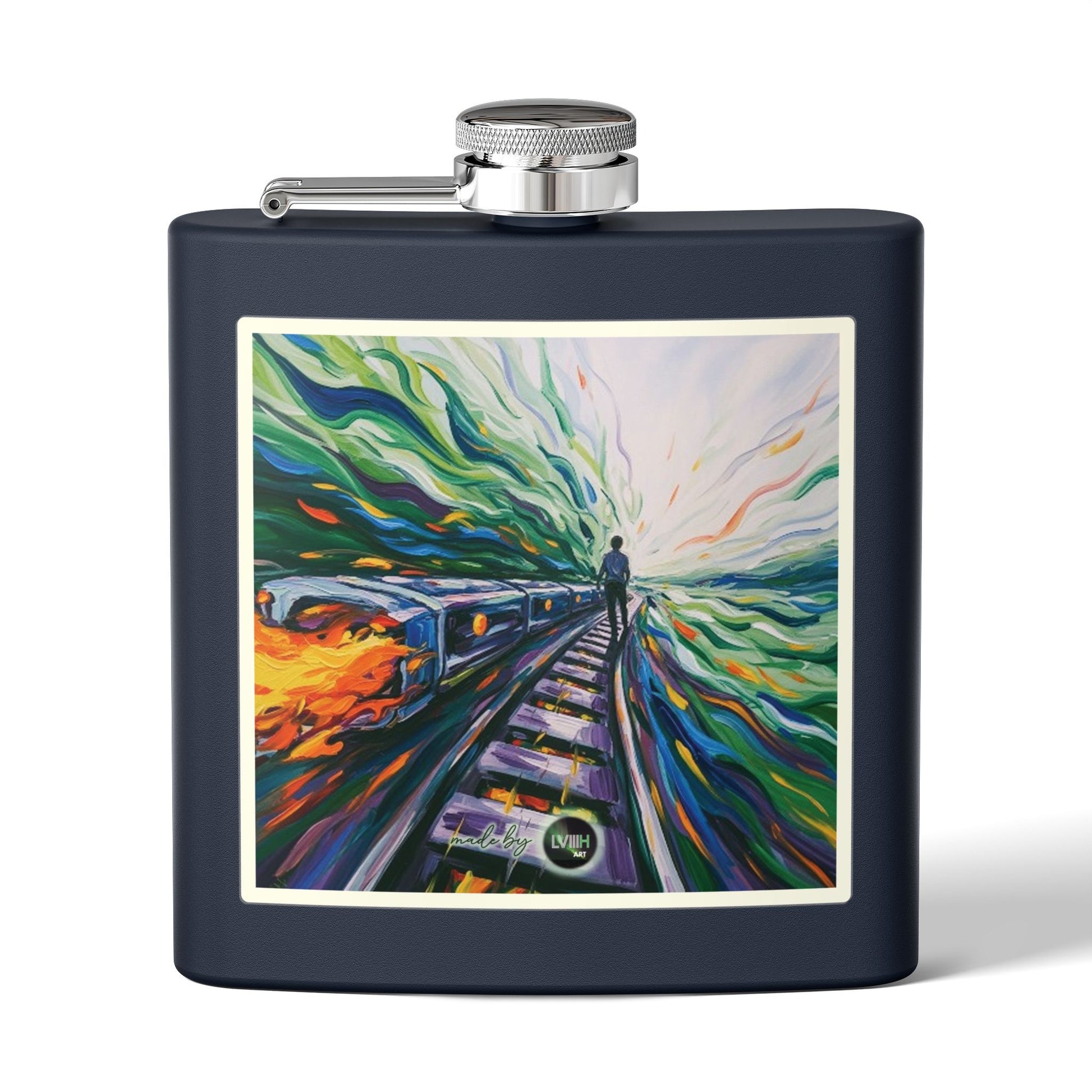 From the art collection Fast tracks: a stylish Stainless Steel Flask and a perfect accessory for any occasion. With high quality & original design, this flask blends functionality with modern aesthetics. Its vibrant powder-coated finish and artistic design make it a standout piece wherever you go, whether at a picnic, a concert, a camping trip or in the ski slopes. With a compact 6oz capacity, it’s perfect for carrying your favorite beverages on-the-go. Ideal for anyone who enjoys a touch of personality in their drinkware. This flask also makes a thoughtful gift for holidays like birthdays, graduations, or special celebrations, enhancing the experience with every sip.